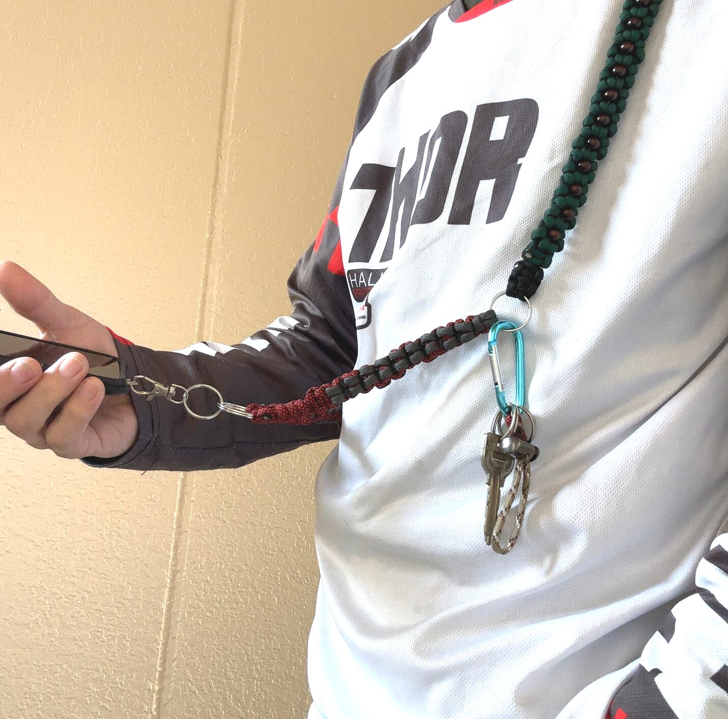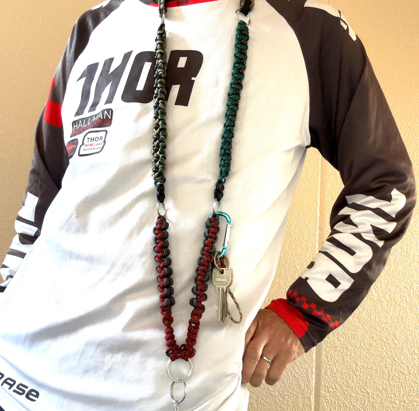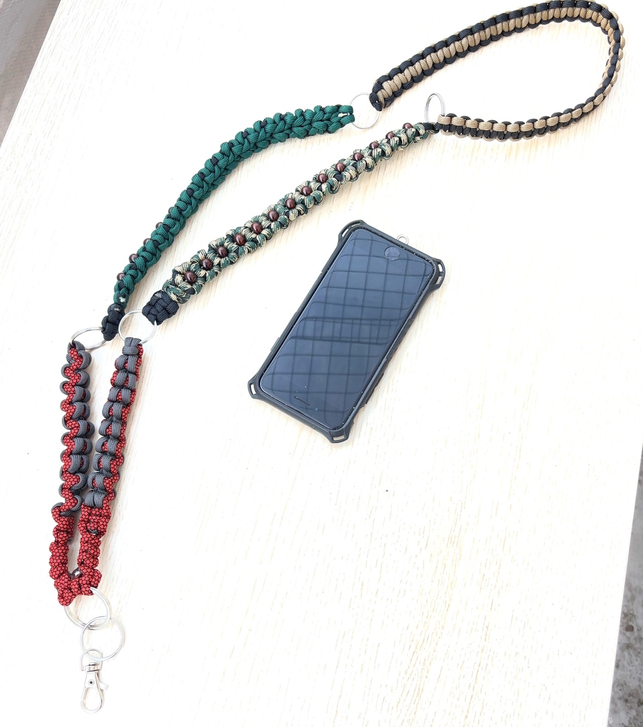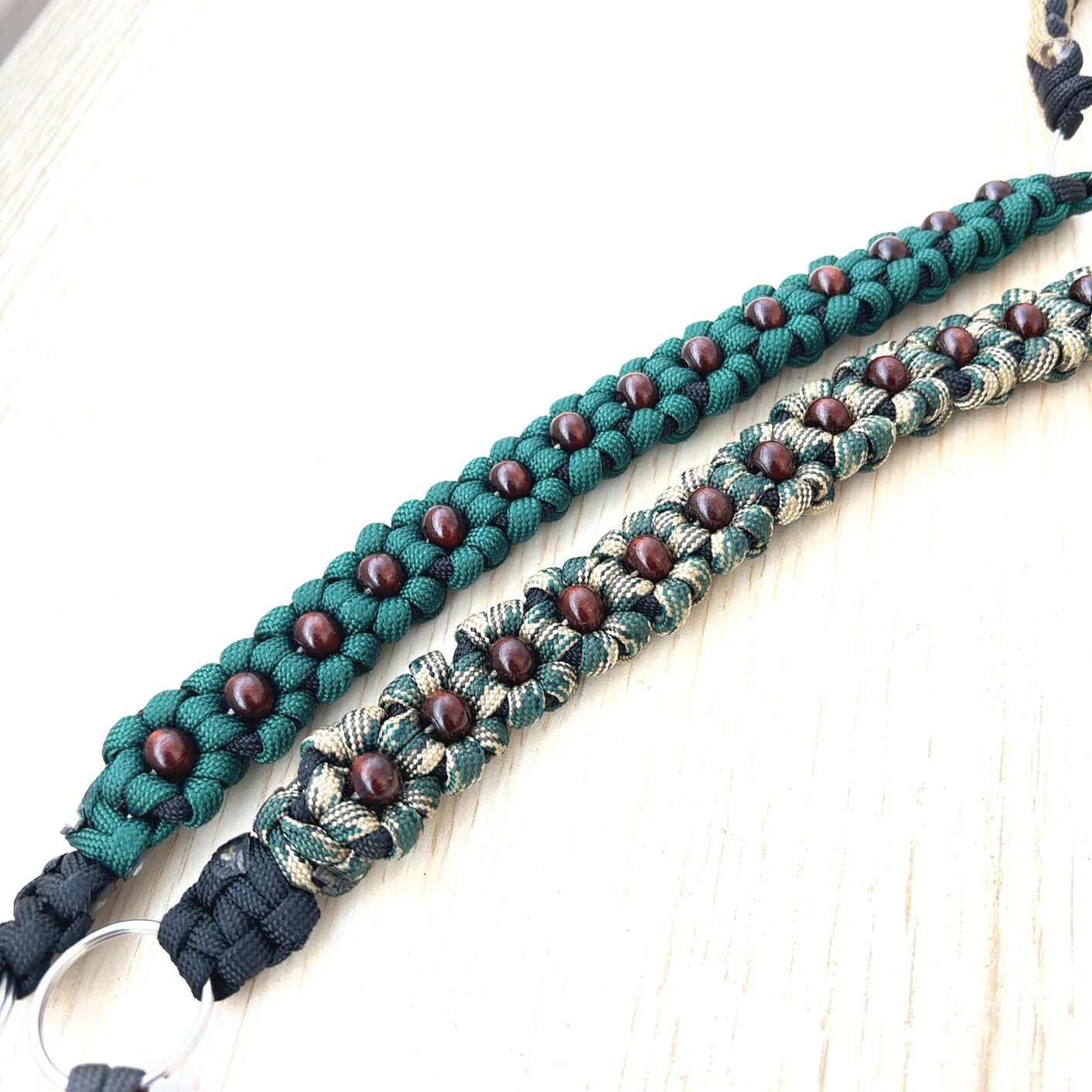 550パラシュートコード5色、リング、ナスカン、ウッドビーズを使い