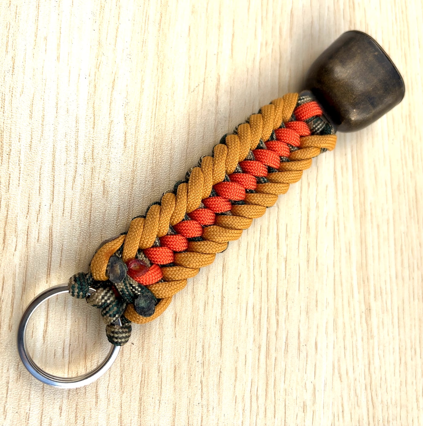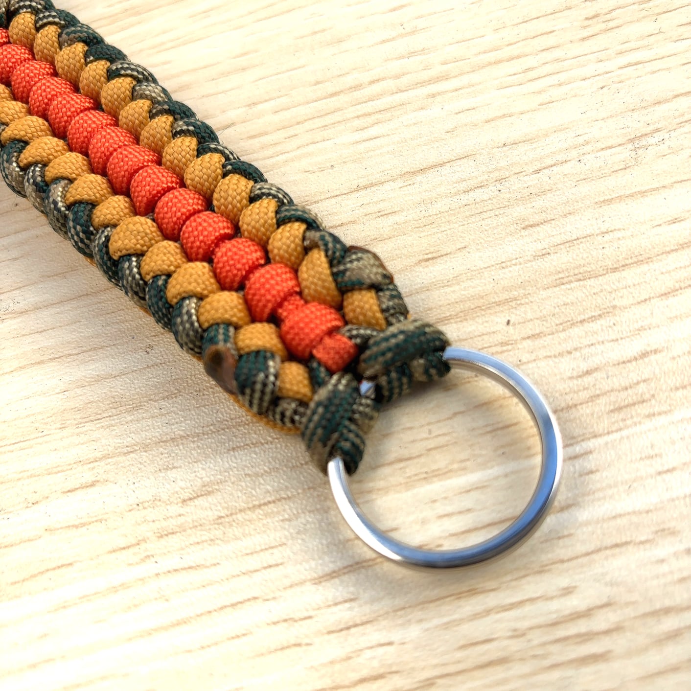 このキーホルダーは、耐久性に優れたパラシュートコードを使用しており、