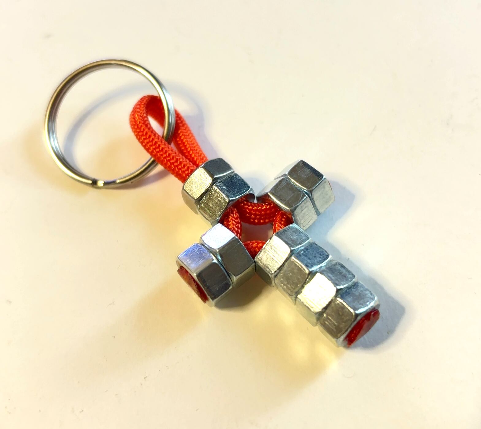 パラコード クロス・キーリング M6ナット十字架 オレンジ